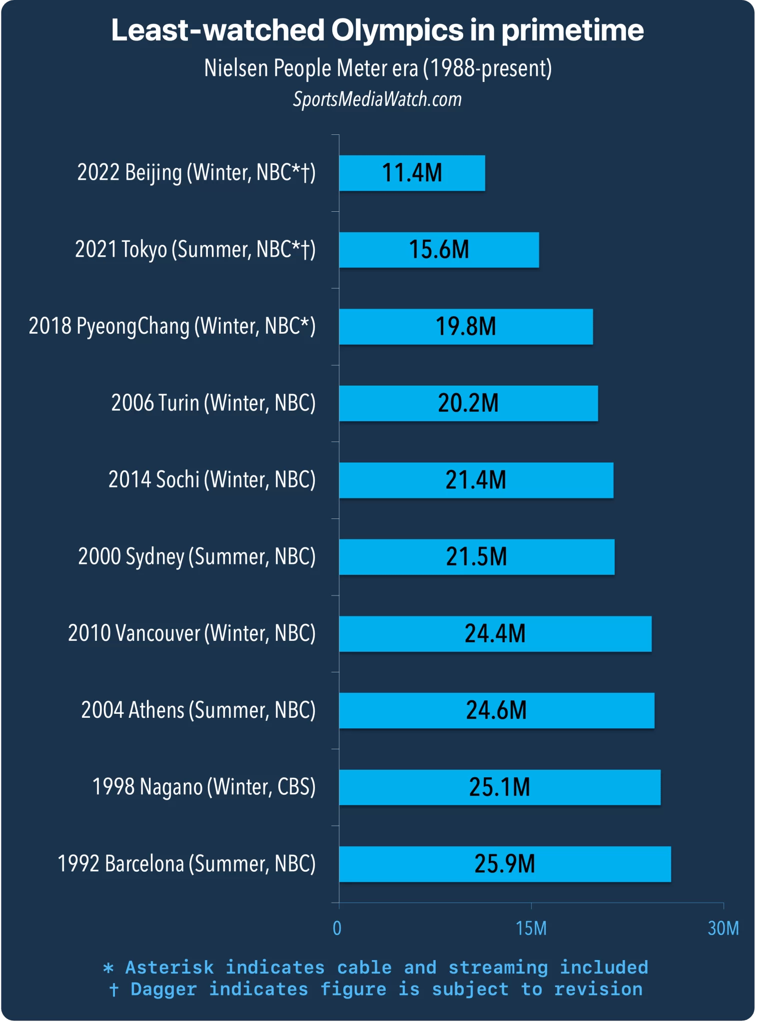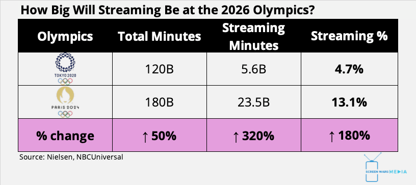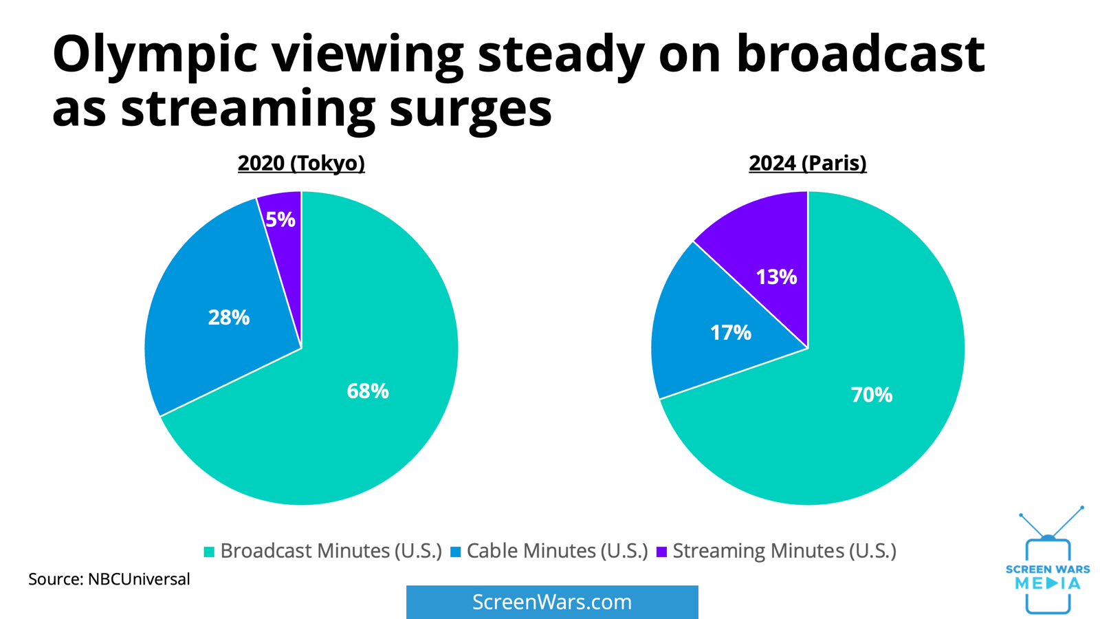 In 2020, streaming represented roughly 5% of U.S. Olympic viewing.