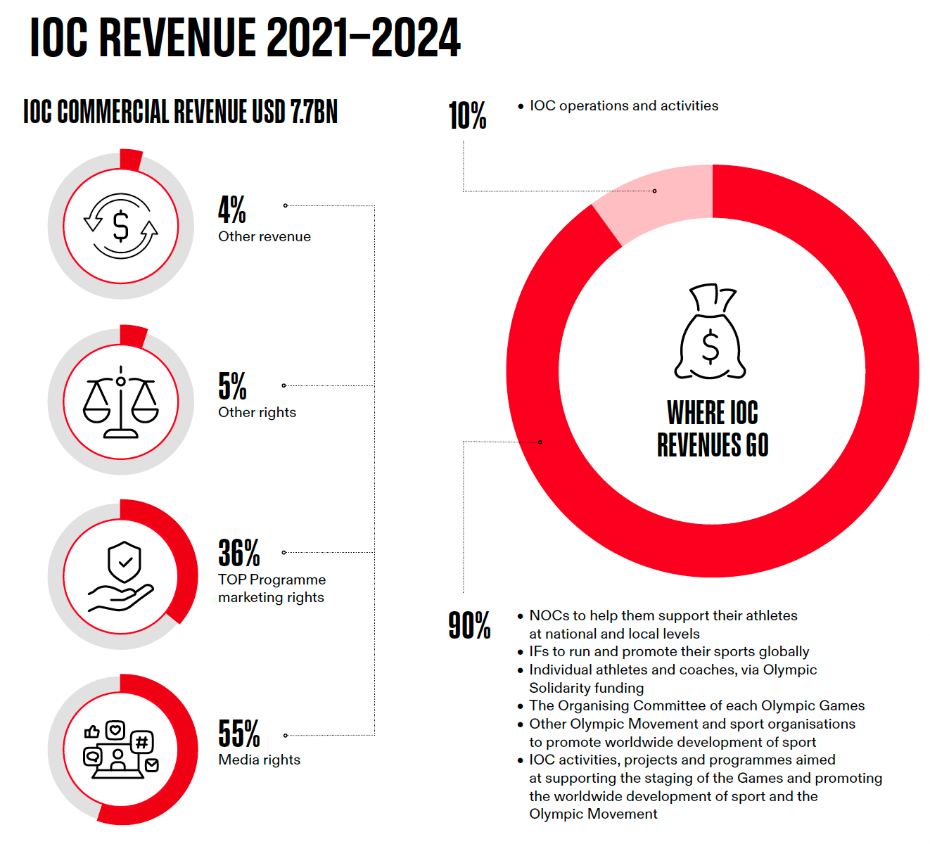 Just like other sports, media rights make up the largest source of revenue (55%).