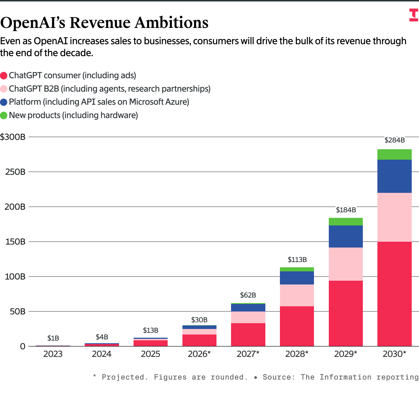 OpenAI wants to turn this into a fearsome five. They plan to build a $102B ad business by 2030. That would be 36% of their total revenue ($284B).