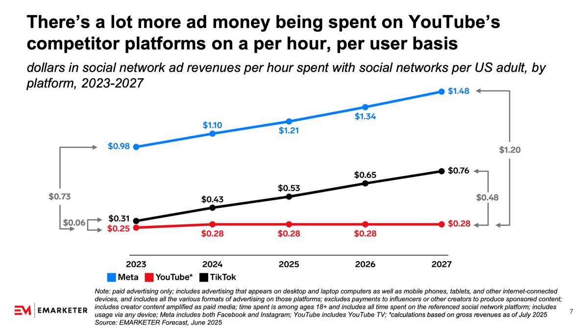 Even without premium video or the big screen, Meta makes 79% more money per hour of attention.