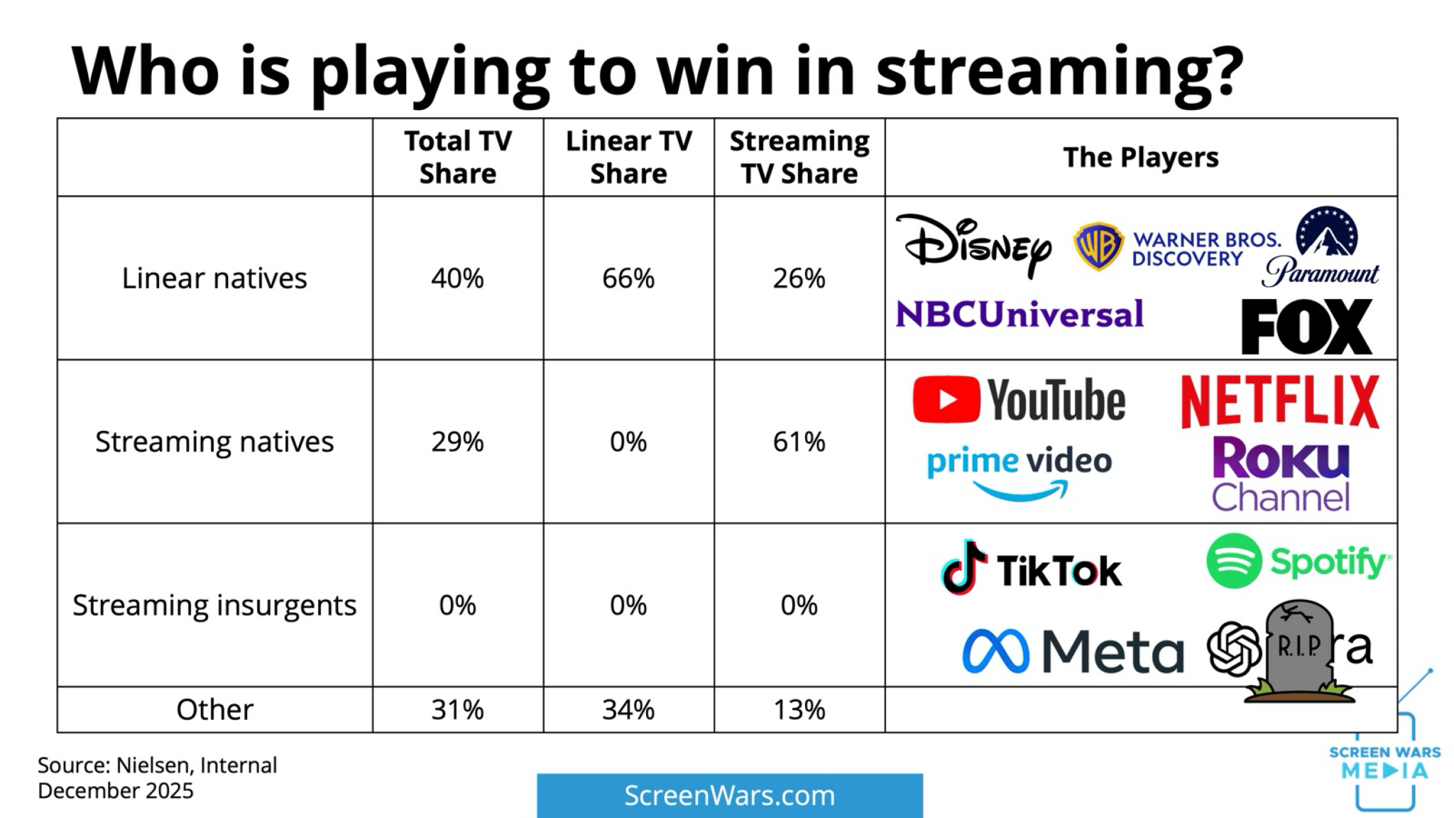 1) Meta has almost no presence on TV screens