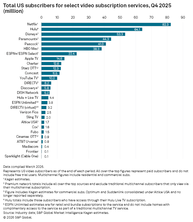 Keep in mind: Disney, Paramount, and Warner Bros. Discovery totals include overlapping subscribers across services.