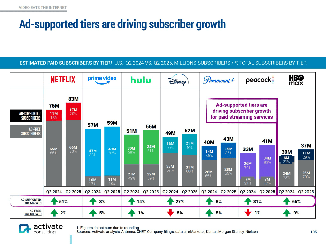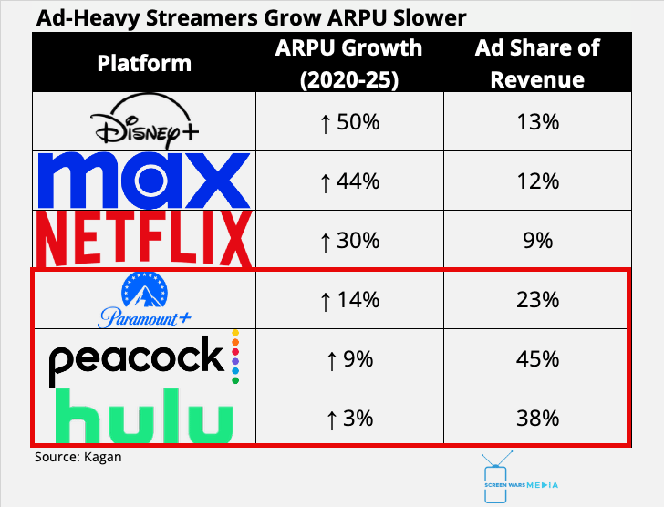 Interesting: Even when you look at the growth rate over the past 5 years, the subscription-heavy streamers are far outpacing the ad-heavy group.